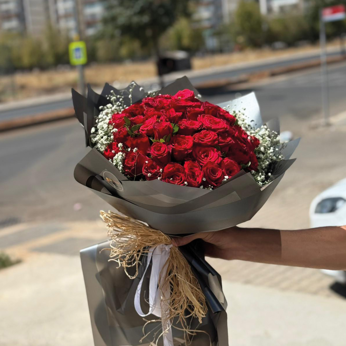 61 adet taze kırmızı gül buketi ile özel anları unutulmaz kılın.