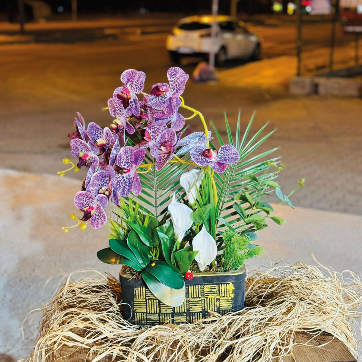 Diyarbakır’da ev ve ofis dekorasyonu için özenle hazırlanmış seramik vazolu mor orkide aranjmanı, şık ve kalıcı bir seçenek sunar. Baby shower veya hediye amaçlı kullanım için uygundur.